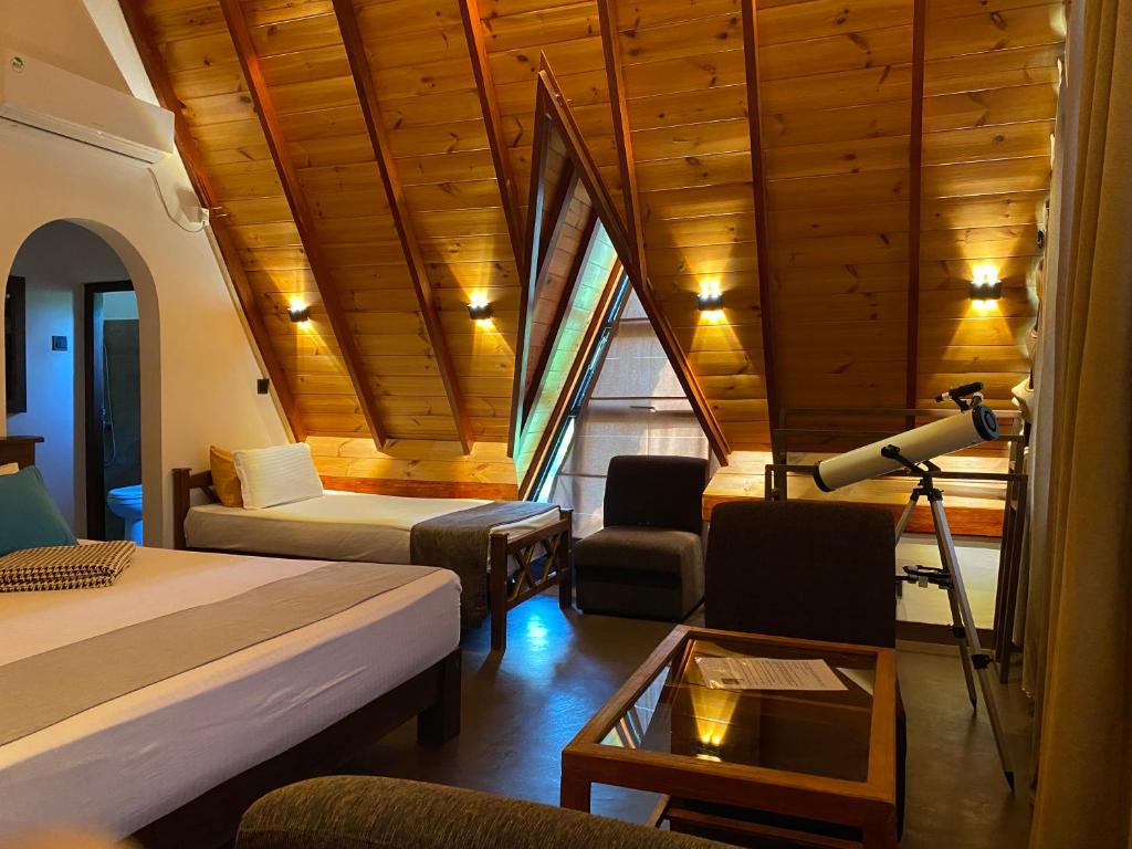 Unwind in our Double Room with Mountain View at Ella Nine Arch Spice Garden. Experience unparalleled relaxation as you gaze upon the breathtaking vistas of Ella's majestic mountains, offering a tranquil escape amidst nature's beauty.